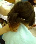 4.生え際〜首のうしろ (3に続いて)、3の要領で、首と頭の境目の生え際をもみ ほぐします。3回程度を目安に行います。 |